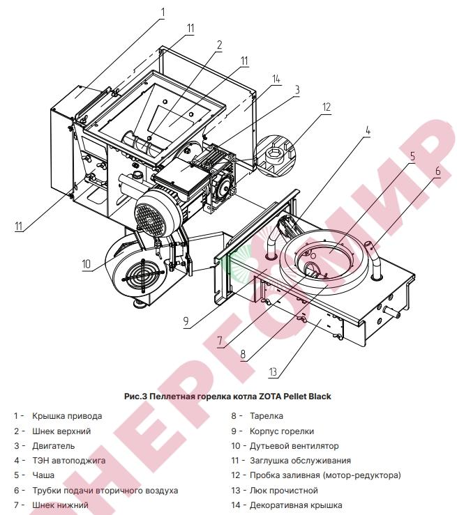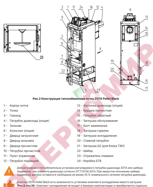 Технические характеристики пеллетного котла Zota Pellet Black 35
