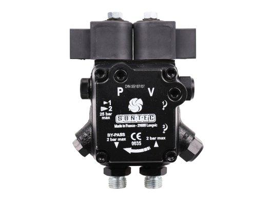 Топливные насосы Suntec серии AT оснащены двумя электромагнитными клапанами в линии с функцией запирания. Имеют 2 режима давления, переключение осуществляется вторым встроенным электромагнитным клапаном.